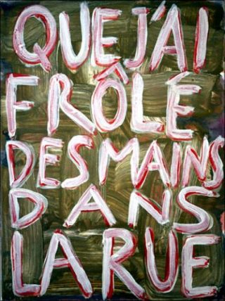 Les peintures de Corentin Canesson apparaissent comme un renoncement à la représentation par un geste rappelant une tendance expressionniste de la peinture abstraite et une pratique conceptuelle, sorte de «Pré-textes à la peinture, sous-titres, titres, discours et signes à la peinture». Par l’atmosphère qui s’en dégage, les Å“uvres ouvrent la possibilité d’une fiction à venir.