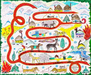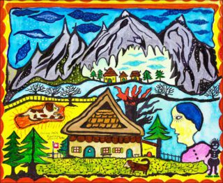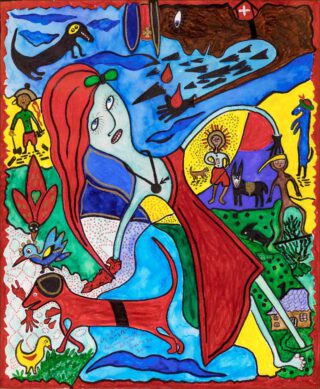 Des personnages fantastiques et étonnement colorés, des voyages autour du monde en mille et un fantasmes, un bestiaire et des métamorphoses d’une immense créativité, des maisons multiformes pour abriter un imaginaire débordant, et le rêve d’une vie pleine de sérénité, d’apaisement dans le cadre d’images de la Suisse, telle que Corinne Deville pouvait se la représenter.