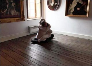 «Corps de masse» est un projet né d’ateliers menés au Musée d’art et d’histoire de Saint-Denis, installé dans un ancien Carmel. Halida Boughriet a filmé des habitants de la ville, familles, jeunes, groupes d’amis, invités à se rassembler, s’enlacer et faire corps devant la caméra, avant de se séparer lentement. Les scènes se déroulent dans les salles du musée, autrefois cellules des religieuses, espaces exigus, contraignant l’artiste à des cadrages serrés. Les corps unis, baignés d’une lumière naturelle, reprennent inconsciemment les postures des sujets des peintures classiques exposées.