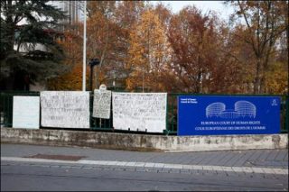 Rue du Levant, la Cour Européenne des Droits de l’Homme surplombe de modestes jardinets. Sa présence écrasante et envahissante jure, détonne. Un peu plus loin, boulevard Pierre Pflimlin, je suis déconcertée par sa taille démesurée en regard des faubourgs environnants. Près de l’entrée flottent les couleurs de l’UE. Les drapeaux s’y réverbèrent, comme captifs de la structure de l’édifice. Je les photographie.