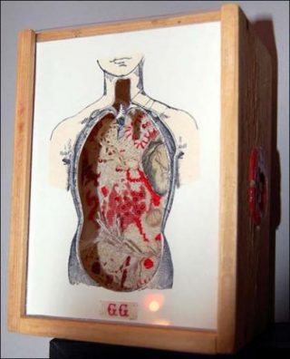 Inscrite au coeur des courants contemporains réformateurs de la pratique de l’art textile, sa charmante et néanmoins monstrueuse petite boutique des horreurs vient gratter à l’endroit de certaines plaies. Là où cicatrise la chair, l’artiste ouvre une béance de légiste sur le plus qu’intime, le profondément soi, l’intérieur, l’invisible, la matrice.