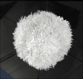 On retrouve la même blancheur dans sa sculpture Snow Ball sous la forme d’une sphère incomplète constituée de cristaux de sucre qui se reflètent dans trois miroirs perpendiculaires en constituant une sphère qui rappelle une boule de neige.