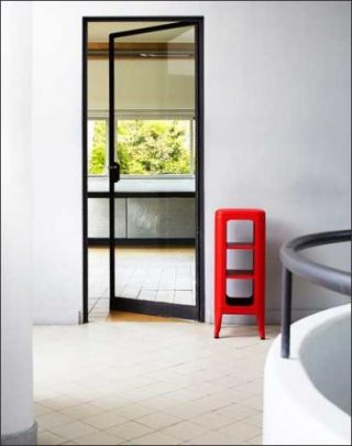 À la frontière entre l’architecture et le design, La Villa Savoye et Tolix se sont unis pour créer cette exposition et ainsi fêter, de façon singulière, cet anniversaire. La cohabitation au contraste chromatique prononcé, suggère une visite riche en complémentarité. Quand la «machine à habiter» immaculée rencontre la couleur, la déambulation n’en est que plus pigmentée. Au fil du parcours, les meubles Tolix sont comme des per¬sonnages colorés en visite dans un lieu intemporel. Les teintes vives, les formes et les matériaux font échos aux volumes. Ajoutée à cela, la lumière, qui innonde les espaces, fait vibrer les couleurs en accentuant les nuances. Les meubles Tolix sont ainsi sublimés et apportent une nouvelle lecture architecturale.