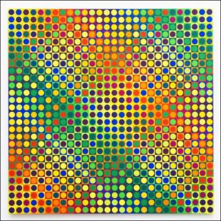 Dès 1958, Julio Le Parc développe un système unitaire afin de régir la surface du tableau, les formes et leur relation sur le plan. Se limitant à l’origine à l’utilisation du noir, blanc et gris, Julio Le Parc poursuit ses recherches avec la couleur et définit à partir de 1959 une gamme unique de quatorze couleurs, jamais modifiées à ce jour, qu’il organise selon un système rigoureux de combinaisons de motifs géométriques répétitifs, permettant ainsi des associations infinies et l’effacement de tout formalisme ou expressions de sensibilité artistique personnelle.