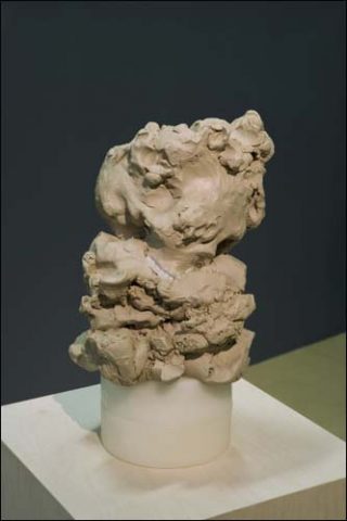 Preuve de cette évolution (ou peut-être devrait-on dire involution ?) vers l’informe, les crânes modelés de la série Head, dont l’une des versions est exposée chez Nathalie Obadia, perdent progressivement toute apparence humaine pour ne devenir qu’un amas de chair vivante.