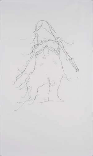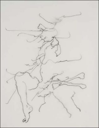 De la même façon, les nus de Chloé Piene restent des «hypothèses de corps», incomplets, fantasmagoriques, où l’on retrouve la récurrence des seins, de la tête, des jambes. Eux aussi subissent une perturbation, exprimée dans la fébrilité même du trait de crayon, instable, vibrant comme s’il était exposé en permanence à des ondes sismiques d’une amplitude variable. Lieu de tensions et surtout d’ouvertures, le corps se contracte, se dilate, ses contours se rompent au risque de le rendre perméable et peu identifiable.