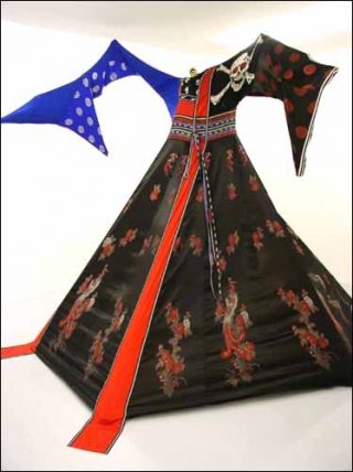 Avec Beijing Bitch, Lara Schnitger parle à son tour de féminité. La structure conique, recouverte de tissu, occupe toute la surface de la pièce, encombrant la vision et imposant du même coup une forme de majesté proche du sacré. Cette structure qui prend tour à tour l’apparence d’une tente et d’une robe évoque autant le long travail de fabrication du tissu que l’abri, le refuge et la protection de la mère nourricière qu’illustrait en son temps Piero Della Francesca. Lara Schnitger se situe à ce point d’attache. Son travail illustre ces trajectoires de la femme qui travaille et qui enfante, de la femme qui exprime sa sensualité dans l’artifice de la beauté et de l’apparat. L’exposition de cette féminité, le mystère de son apparition ainsi que la violence qui transparaît lorsqu’on la dévoile sont contenus dans la mise en scène d’Eric Troncy intitulé « A Display ».