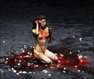 Fallait-il cette heure et demie de déchaînements en tout genres — dans lequel l’humour est heureusement loin d’être absent, en définitive — pour que vive l’épure d’une vraie tendresse au sein de l’unique duo, couché sur une table au sein d’un immense plastique blanc envahi de liquide jaunâtre?