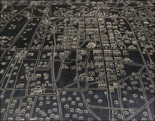Pour «Cronotopo», Mariana Castillo Deball présente une sélection de travaux récents ainsi que de nouvelles productions qui révèlent le caractère évolutif de son processus de travail. Au Mrac seront ainsi présentés deux travaux majeurs spécifiquement adaptés ou produits pour les espaces d’expositions temporaires du musée. Nuremberg Map of Tenochtitlan (2013) est une œuvre monumentale couvrant l’intégralité du sol de l’une des deux salles d’exposition. Fait de simples planches de bois gravées, assemblées de façon à former un dessin gigantesque, ce sol reproduit la première carte de Tenochtitlán envoyée aux Européens, et demeure l’une des rares cartes, ainsi que l’une des plus connues, qui nous soit parvenue de cet empire Aztèque pré-colonial.