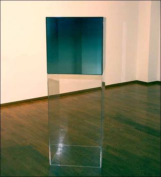 — Cube #5 (Blue), 2005. Verre enduit d’inconel. 50,8 x 50,8 x 50,8 cm.