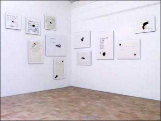 — Florin Tudor & Mona Vatamanu, Ploaia (The Rain), 2005. Performance, vidéo : 3’42, dessins (21 x 29,7 cm chaque) et carnet sous vitrine