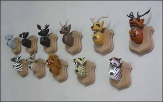 Hunting Trophies (trophées de chasse) associe onze robots animaux réalisés à partir des robots chiens I–Cybie de Silverlit, transformés par l’artiste, à la manière des taxidermistes, en bustes d’animaux sauvages divers (lion, panthère, cerf ou rhinocéros).