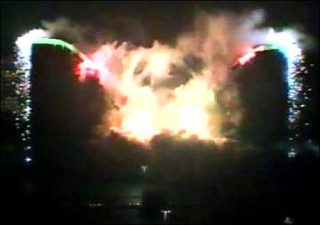 Le second volet de Desniansky Raion n’est pas moins percutant: une vidéo, récupérée par l’artiste, procède à une interrogation sur la notion d’événement — sa scénarisation, voire sa «spectacularisation». La scène se déroule dans les années 1980 à Meaux, en région parisienne. La destruction d’une barre HLM, qui en soi ne constitue pas un événement a priori, devient prétexte à un gigantesque spectacle son et lumière: projections vidéo sur la façade de l’immeuble, feux d’artifice sur fond de discours officiel du maire de Meaux et de mélodies de Jean-Michel Jarre, que la bande son occulte ici volontairement.