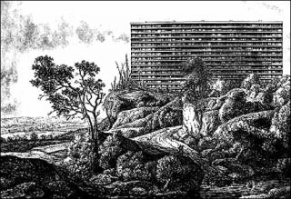 La multitude austère d’immeubles d’habitation, d’abord désordonnée, fait bientôt place à un ensemble de tours agencées en un cercle parfait, évoquant le monument mégalithique de Stonehenge, en Angleterre.
