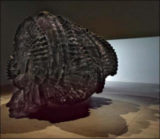 A partir de 2008 et ce durant deux ans, Roberto Cuoghi s’est mis à étudier de façon passionnelle voire obsessionnelle les langues et rituels assyriens puis a édifié une reproduction gigantesque d’une amulette assyro-babylonienne emblématique du démon/dieu Pazuzu, conservée au musée du Louvre. Pazuzu est une divinité assyrienne d’environ 612 avant notre ère, démon du vent autant craint qu’adulé; «Evil drives evil away» («le mal chasse le mal»).
