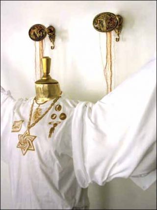— Pour maman, 2005. Bois et satin brodé. 83,5 cm.