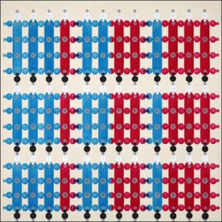 En résulte des compositions à l’effet choral où les éléments se répondent et s’unissent pour créer un espace pictural bien identifié. Son travail témoigne d’une grande diversité de recherche qui offre une variété de propositions et laisse la porte ouverte à la surprise et à la réflexion sur la multiplicité des expériences plastiques et optiques que peut encore nous offrir la peinture géométrique.