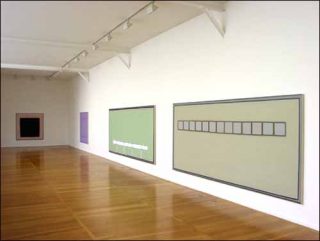 Dan Walsh retravaille son motif jusqu’à satiété, jusqu’à l’habitude. Avec des formes dépouillées et simples il parvient à composer des surfaces qui jouent avec l’espace. Comme dans un ping pong, le tableau et les murs se répondent. A l’intérieur de la toile les motifs répétés comme des échos font vibrer la composition dans un champ de couleurs ouvert et calme. Un sentiment d’apaisement et de détente vous gagne à contempler ces grands carrés et ces grands rectangles.