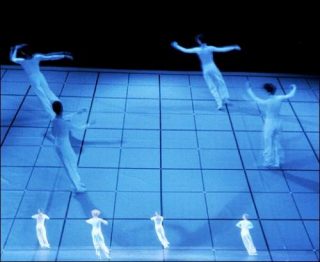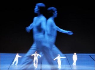 Dance – son titre le dit assez – n’est que danse: la recherche d’une composition chorégraphique qui ne serait rien d’autre que ce qu’elle fait : le perpétuel engendrement de la forme par le mouvement des corps. Créée en 1979, elle constitue dans l’histoire de la danse un moment de synthèse – combinaison de l’épure de la danse minimaliste et de l’intense collaboration avec la scène musicale et artistique de l’époque. Sur une musique de Philip Glass et un dispositif filmique de l’artiste Sol LeWitt, Lucinda Childs invente une danse du flux – où viennent se rejoindre son travail avec Merce Cunningham et ses expérimentations au sein du Judson Church Theater. Remontée et restaurée, cette nouvelle version de Dance dévoile un écart temporel – le film laissant entrevoir les fantômes des danseurs d’origine, dont le solo dansé par Lucinda Childs elle-même. En trois sections de 20 minutes – deux quartets et un solo – Lucinda Childs façonne le courant des corps pour l’inscrire au cœur des boucles répétitives de Philip Glass. Elle dessine dans l’espace une structure géométrique qui épouse la rythmicité du mouvement – formant un vaste contrepoint redoublé par le défilement des images. La présence en surimpression du film – jouant sur les échelles et les angles – produit une interpénétration spectrale des silhouettes et de leurs doubles: un vertige qui transporte le regard au cœur du mouvement et donne à l’espace un volume – à la manière d’un plan où les lignes rêvent et s’agencent, où tout semble glisser, flotter dans un territoire fluide, hors du temps. Un concentré de minimalisme qui s’apparente au mouvement perpétuel.