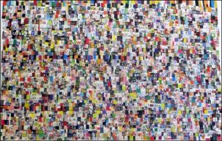 Le paradoxe est au cœur de l’œuvre de Dani Umpi. Dans ses œuvres, le spectateur-lecteur doit paradoxalement faire un effort de concentration soutenu afin de lire les textes reconstruits; il faut «dé-voiler» chaque mot, chaque figure ou chaque message découpé et caché dans les champs chromatiques, dans les informations ou les publicités, comme s’il s’agissait des franges d’un tapis. Dans ce processus de reconstruction linguistique, surgissent d’autres sources d’information qui s’ajoutent au sauvetage du rebut, favorisant ainsi la formation de diverses couches de signification intrinsèques au «tableau».