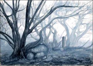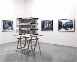 Assistons-nous à l’après Déluge ? Tout a été emporté, tout a été balayé, il ne reste plus que des rampes d’accès qui ne conduisent nulle part. Étrange cul-de-sac perdu dans la forêt, étrange impasse dans cette végétation qui ne semble avoir aucune limite. Le minéral et le végétal se rencontrent pour mieux s’affronter, pour mieux se défier. Les constructions humaines semble tenir le choc, mais elles se dressent comme des ombres portées. Campaniles pour rire, beffroi pour rien, clocher ridicule, ces marchepieds en colimaçon tournent à vide, ils brassent du vent pour rien, pour personne, comme pour de faux.