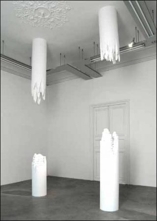 Les conflits font bizarrement moins de morts, mais ils s’attaquent désormais aux symboles. Les Twin Towers étaient deux tours de Babel qui se sont transformées en stèle. Récit biblique, leur fin était annoncée comme dans les dessins de Daniel Arsham, elles étaient des escaliers géants qui ne menaient nulle part, elles ont été un tombeau, comme les champs de stèles que dessine à l’encre noire l’artiste. Ces plaques de pierre posées dans le sol meurtrissent le sol autant qu’elles l’épargnent.