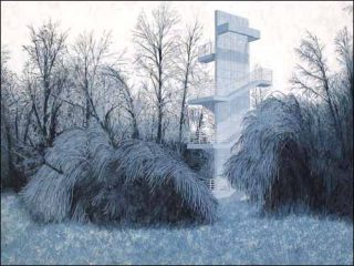 Les calques, quant à eux, conservent l’esprit et l’atmosphère des précédents travaux. Réalisés en deux exemplaires, ces calques de calques se superposent dans l’espace. Miroir de miroir, ils varient très peu les uns des autres. Même la couleur ne permet pas de les distinguer complètement.
