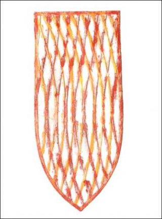 — Daniel Dezeuze, Bouclier, 2009. Peinture sur bois et métal. 151 x 66 cm