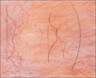 Les Dessins hérétiques, les dessins de flèches sans titre et autres Calaceite (pastels représentant des arcs) font songer à des œuvres sur papier plus anciennes de l’artiste (Le Sac de Valence, 1985, par exemple).