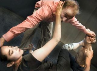 Dans Dans est une pièce construite à partir d’une idée d’une simplicité fondamentale: la stabilité inatteignable des relations humaines. Une écriture impeccable et des interprètes sidérants ajoutent à une expérience vivifiante, l’explosion d’une puissante énergie qui donne sens aux gestes — à mi-chemin entre fou-rire et désespoir.