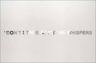 Le souvenir s’installe partout dans cette exposition. Son fantôme s’immisce dans les images comme dans les fictions qui y sont racontées. Le miroir de l’entrée dans lequel se reflète le spectateur et la pensée interpellante d’un Autre invisible (« Don’t Stare At Me », He Whispers qui peut se traduire par «’Ne me fixe pas’, chuchote-t-il») déplace le spectre sur le territoire de l’intime en écho avec les estampes, et avec la pièce en angle surtout, intitulée Entre-vue que l’artiste a réalisée avec Vincent Lamouroux et l’actrice Elina Löwensohn.