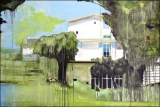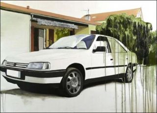 Mais on retrouve le leitmotiv du carré blanc sur fond coloré également dans des paysages de pavillons, de villas cossues, de champs pâteux vangoghiens, sans la moindre présence humaine, donc sans nécessité réelle…