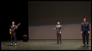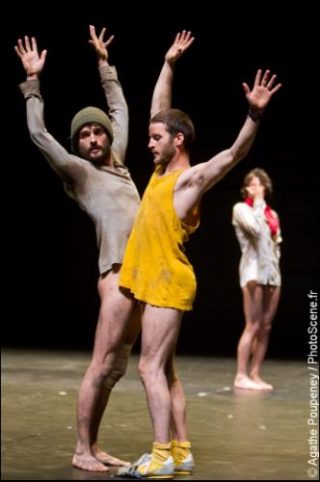 Notre enthousiasme irait plutôt aux gagnants de la deuxième place, Aloun Marchal, Roger Sala Reyner et Simon Tanguy, dont la force parodique n’enlève rien à la qualité du mouvement. Vêtus seulement d’un tee shirt, en un clin d’œil ironique à la pièce Aatt…enen…tionon de Boris Charmatz, les trois interprètes, performer, chorégraphe et dramaturge, mettent au jour le processus créatif et s’interrogent sur l’origine de l’écriture scénique – ne serait-ce qu’un simple mouvement de doigt suivi méthodiquement par le danseur!