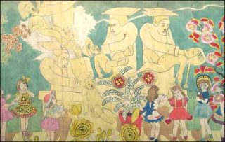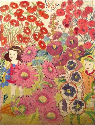 Probablement la plus étoffée et la plus troublante, la première exposition monographique en France de cet artiste d’art brut présente un accrochage d’un dédale de planches recto verso, de dessins aquarellés et de collages, où se déploie un monde étrange peuplé de fillettes souvent nues, pourvues d’un pénis, d’hommes en arme, de soldats, de monstres ailés, de fleurs géantes, un monde pourtant familier tant les figures qui s’y logent nous rappellent par leur graphie les illustrations des livres pour enfant du début du XXe siècle, les publicités et les «illustrés».