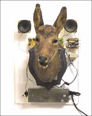 Cispeo, 2004. Matériaux divers, moteurs, dispositif sonore. 53 x 38,5 x 45,5 cm.