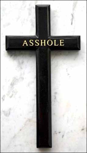 — Asshole, 2004. Marbre, gravure et feuille d’or. 35×18 cm.