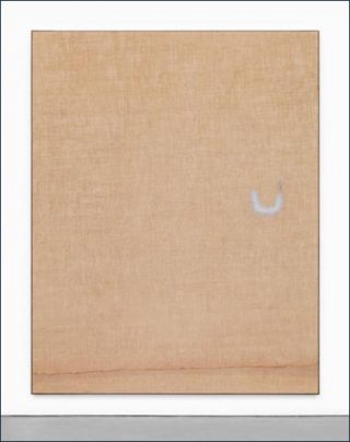 F comme «Failure» (échec). David Ostrowski ne réussit pas toujours ses peintures. C’est à chaque fois un challenge nouveau et il ne se donne qu’une chance pour les réussir. Quand l’artiste est prêt, il passe à l’action. C’est imprévisible et parfois un simple enduit suffira, une simple goutte de laque, un bout de scotch arraché sur un fond blanc, une toile de jute tachée avec de l’eau, un bout de papier collé sur la toile. On est dans l’infra mince, aux limites de la peinture, celle qui n’est parfois même pas peinte. Elle est méditative, sensuelle, réduite à ses simples constituants, les atomes parfois invisible de l’information d’un tout qu’elle voudrait véhiculer. David Ostrowski va au cœur de la peinture en simplifiant au maximum ses effets.