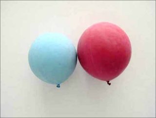— Im Windschatten, 2006. 2 ballons mousse polyuréthane. 36 x 30 x 60 cm.