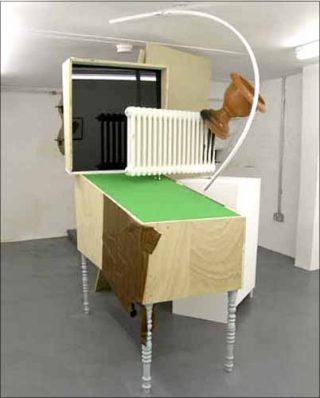 — Unabsichtlich oder absichtlich zerstortes Bild, 2005. Polystyrène, F18, bois, couleur en laque. 190 x 100 x 100 cm.