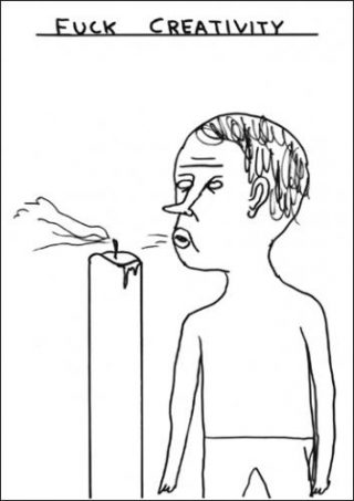 Il s’agit de soigner le mal par le mal en échappant à tout prix à l’esprit de sérieux. Avec ses dessins aux traits mal assurés, presque puérils, David Shrigley réinvente une catharsis bouffonne. On croirait l’oeuvre d’un Peter Pan lecteur de Kierkegaard.