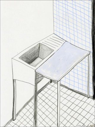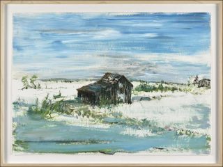 La répétition d’un même motif souligne le caractère toujours évolutif d’un thème dans l’œuvre de Sabine Moritz et les variations infinies qu’elle permet sont aussi un moyen d’empêcher l’effacement d’un souvenir. On retrouve ce processus parmi l’important ensemble d’œuvres sur papier, en particulier dans la série Storm (Tempête). Une petite cabane à l’abandon, photographiée par l’artiste lors d’une promenade près de Munich, puis reproduite au graphite sur papier, a donné lieu, une dizaine d’années plus tard, par le biais de la lithographie, à une déclinaison infinie de versions du dessin. Chaque tirage, retravaillé à la peinture à l’huile et au pastel gras, fait varier la lumière, les teintes, l’environnement, l’ambiance…