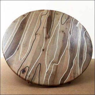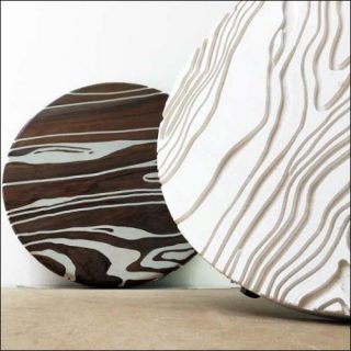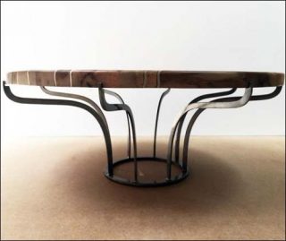 Les meubles conçus par le tandem d’artistes ont été réalisés en bois et en métal. Ornés tantôt de lignes graphiques, tantôt de lignes sinueuses, ils font constamment référence à une nature à laquelle ils rendent hommage. Dans le dessin de ces tables et guéridons, le duo désire que l’intervention de l’homme disparaisse derrière les empreintes de la nature.