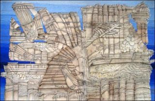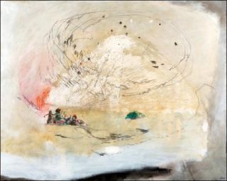 Du proche au lointain, les tumultes sont là , les tempêtes, les accalmies, l’effroi, les peuples et les pythies, l’humour discret, les déplacements, les failles dans l’immensité, les matières rauques, grattées, les territoires glissants, les perditions, les retrouvailles et les jugements. Le grotesque et le carnaval. Les migrations, les détails infimes. Le délicat. La sensualité fine et puissante d’une œuvre singulière aux accents multiples.