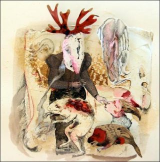 Hélène Lagnieu nous invite à flirter avec l’étrange au cÅ“ur de scènes mystérieuses où le monstrueux s’allie à la sensualité des corps. «Hélène Lagnieu développe un univers unique. S’y croisent dans une atmosphère onirique, influences surréalistes, iconographies fantastiques, bestiaires imaginaires, étranges jardins de curiosité en fusion. Individus non identifiables et sans doute parfois pervers évoluent dans des scènes étranges. Cet univers tourmenté est plein de poésie. Mieux: il est d’une poésie pleine car profondément dérangeante. Continuellement à la recherche de la «pièce manquante», elle fait surgir ce qui jusque-là n’avait pas encore de formes. Des êtres hybrides ne cessent d’apparaître avec une impression de sensualité mais aussi d’étrangeté. Créant des Å“uvres avec des formes plutôt anthropomorphiques l’artiste invente une symbiose formelle entre l’être et la nature». Jean Paul Gavard-Perret, Hélène Lagnieu et les hantises polymorphes, 2011.
