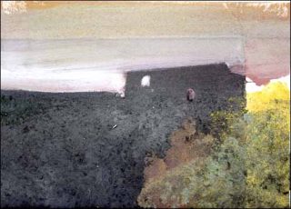 La peinture de paysage, ce genre vu et revu maintes fois et fourmillant de clichés pittoresques, est ainsi, dans l’œuvre de Merlin James, un objet d’étude fécond et le point de départ, voire le pivot central de son entreprise picturale. C’est à travers elle que l’artiste britannique aborde les questions qui le rongent et l’animent. Comment des éléments picturaux (une masse de couleur, une ligne, une forme) peuvent-ils se « coaguler » pour former une Image, titre d’une des œuvres les plus énigmatiques de l’exposition ? À quel moment une touche de couleur est-elle porteuse de sens au-delà de sa réalité picturale ?