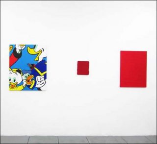 Les deux artistes sont réunis aujourd’hui autour de la couleur et de la thématique du rouge. Dans leurs œuvres, comme dans le cinéma de Chris Marker, «Le fond de l’air est rouge» ou comme le disait Giacometti: «le ciel n’est bleu que par convention, mais rouge en réalité» Si c’est ici le rouge qu’ils mettent à l’honneur, pas de place pourtant pour des papes, des juges, des procureurs ou des clowns au nez cramoisi. Ils convoquent plutôt des balles et du sang, le rouge des flammes, le rouge des Brigades, des Fractions, des Armées, le rouge de la nostalgie d’une certaine violence révolutionnaire.