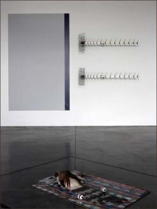 Les Furniture sculptures de John Armleder, systématiquement vouées au hiatus entre deux objets de registres différents? Et si l’on préférait voir en la juxtaposition d’antennes TV et d’une toile abstraite, la tentative des unes à parasiter l’autre… ou à l’alimenter ?