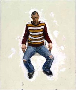 C’est à un autre « complexe » que s’attaque Steven Black. Dans la tradition de la peinture expressive d’un Lucian Freud par exemple, l’artiste conçoit son médium comme une plaque sensible. Les figures semblent apparaître en suspension pâteuse, au-dessus d’une toile-écran envisagée comme une zone d’apparition. Véritable pellicule révélatrice, le support opère comme une peau qui laisse monter à sa surface la rugosité d’une figuration incertaine.