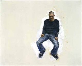 Les camaïeux en blanc-gris-ocre travaillent dans le sens d’une confusion organique entre cette figure qui tente d’advenir et la membrane d’apparition. Cramponnés à leurs sièges, ou flottant dans un espace indéterminé, les personnages de Black ne sont pas tant des portraits, que des existences qui insistent pour apparaître et accéder au visible.