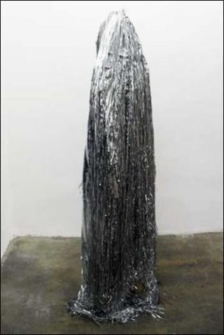 Les têtes appelées «Defaced Heads» sont faites de cheveux humains, probablement d’Indiennes dans le besoin, se prêtant à la fourniture d’extensions capillaires pour les femmes des pays riches ou à la production d’une pièce cynique telle que la mienne, pas très réconfortante ni réjouissante, mais qui reflète peut-être notre condition d’aujourd’hui, avec tout ce que cela comporte comme irresponsabilité et comme inclination illimitée pour les choses mortes.